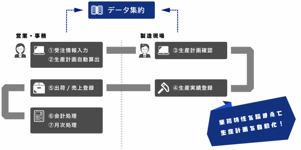 基幹システムの刷新に加えて、納期算出や生産計画に対して、属人化や時間がかかるなどの課題があった。